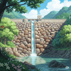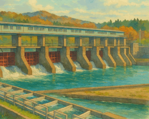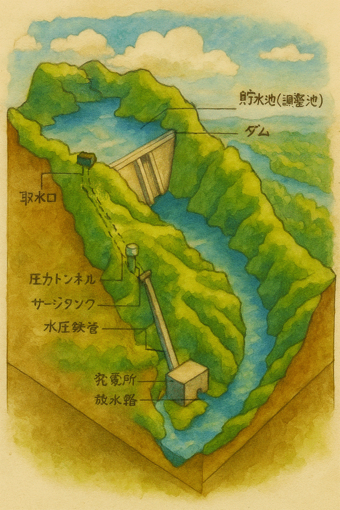 自然の湖や人工の湖などを用いてもっと長時間の需要変動に応じて河川流量を調整・使用する方式を貯水池式発電という。